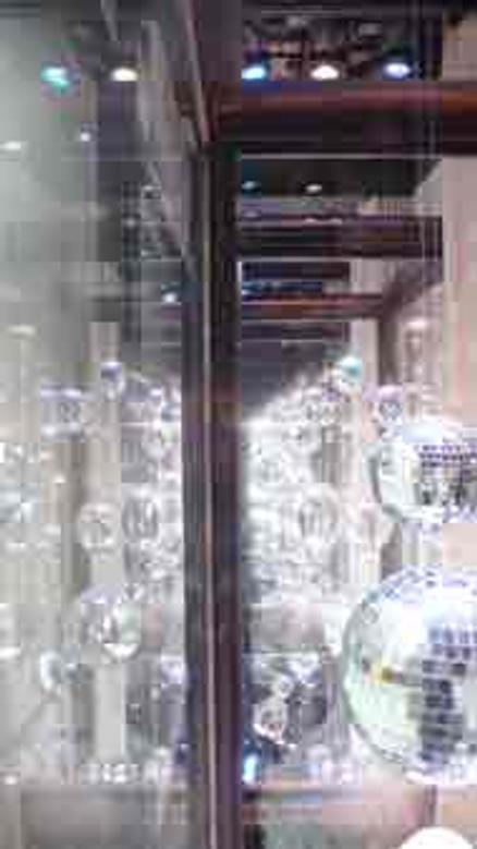E.R. Butler & Co. celebrates 2010 with a radiant display of 28 mirrored disco balls of varying sizes: 8, 12 and 16 inches. The Austrian-made disco balls are somewhat randomly located within display vitrines and synchronized on rotational motors to reflect the computerized ERCO DALI Cantax LV halogen spots and LV LED varichrome display lighting system.