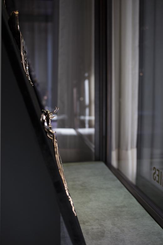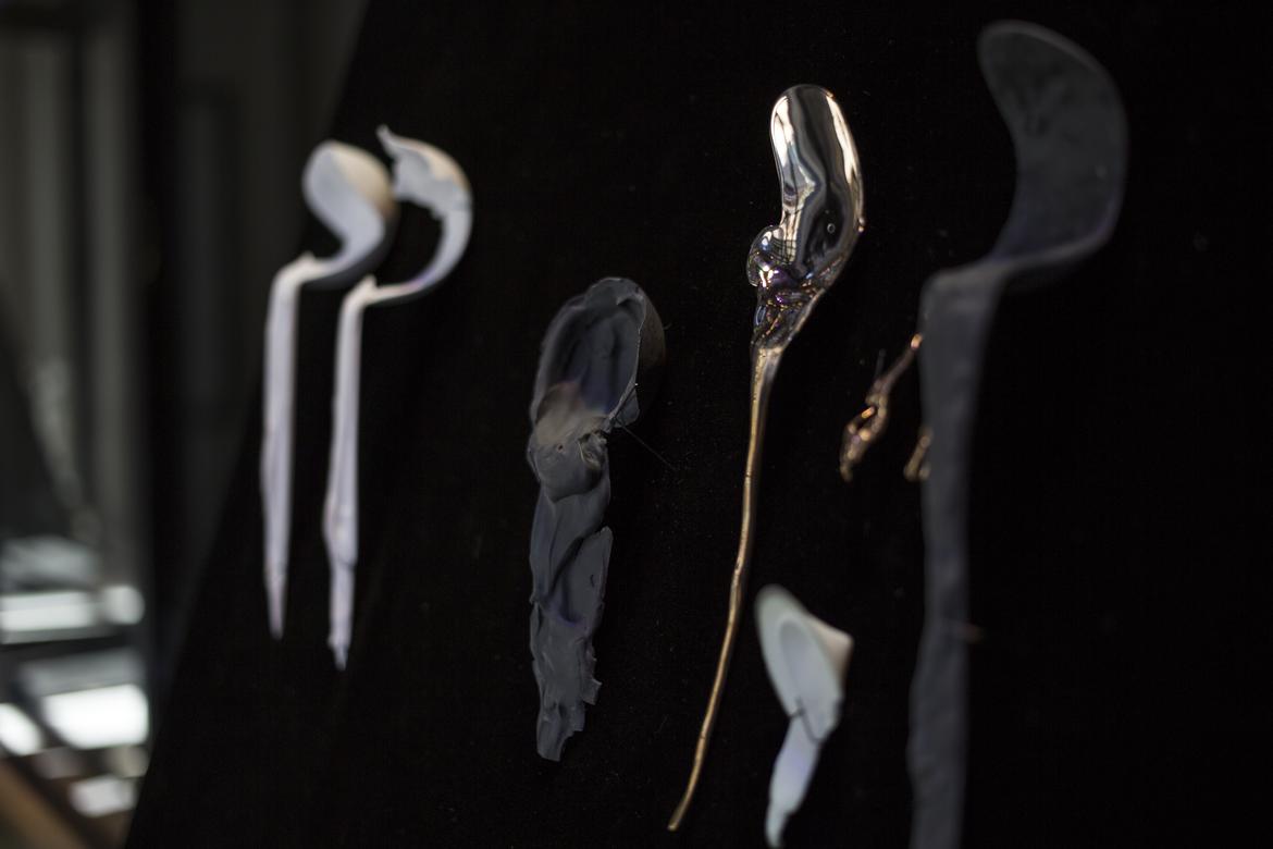 Gamwell uses a sophisticated technical process involving bone china, phosphate dyes, water, and semiprecious metals to create sculptural objects that seductively straddle the line between the fine and applied arts. The result is beautifully disconcerting: fine china and flatware firmly reimagined through the chaotic logic of the natural world.