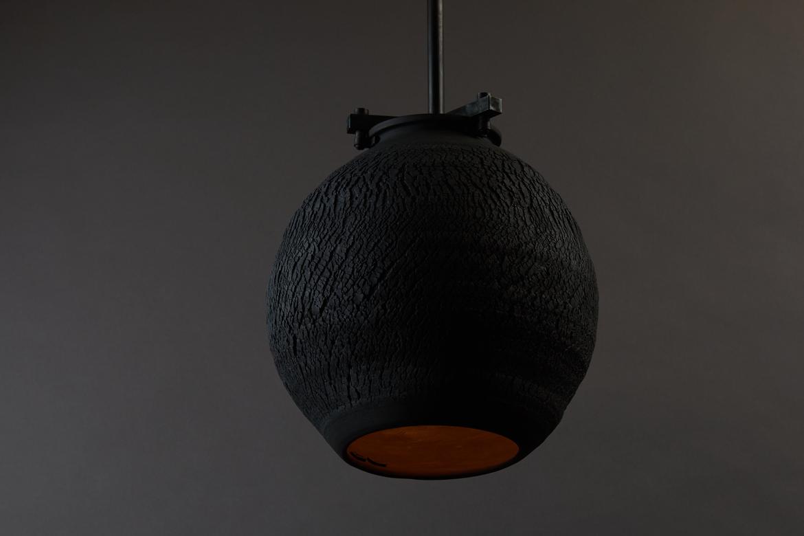 The Desert Table Lamp and Large Desert Pendant in the Negative Finish will be shown with the rest of the designs in the series: the Desert Silo Lamp, the Desert Table Lamp, and the Desert Pendant in Small, Medium, and Large. All pieces will be on view and available for purchase through the E.R. Butler & Co. showroom on 55 Prince Street from May 14, 2022 until August 14, 2022.