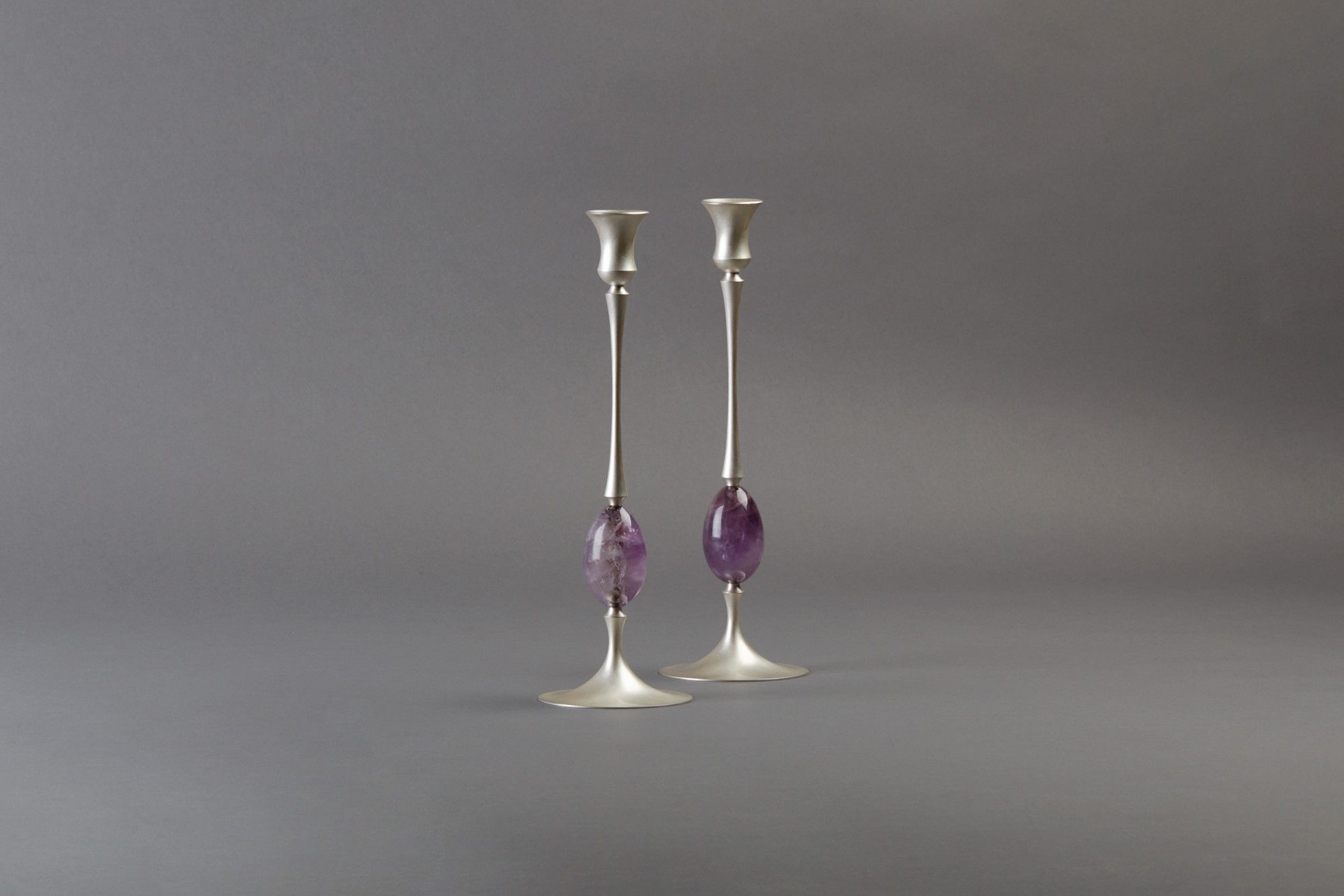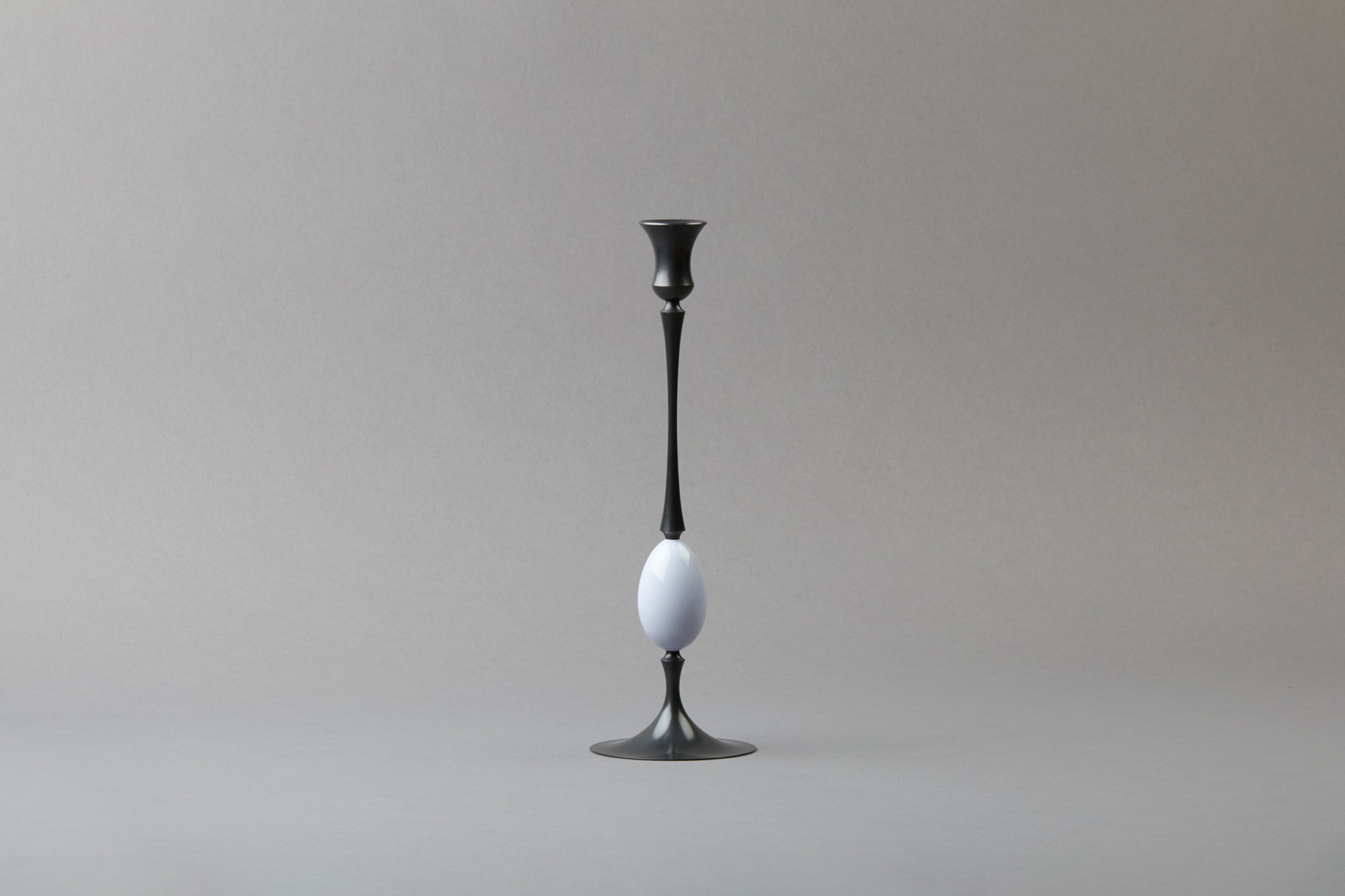 Intrigued by the classic but delicate shape of a Biedermeier candlestick found at a flea market, and impressed by the precision of nineteenth-century lathe work, he tried to capture these qualities using traditional spinning and casting techniques. Daunted, however, by the cost and labor required to realize them, the pieces remained as prototypes.