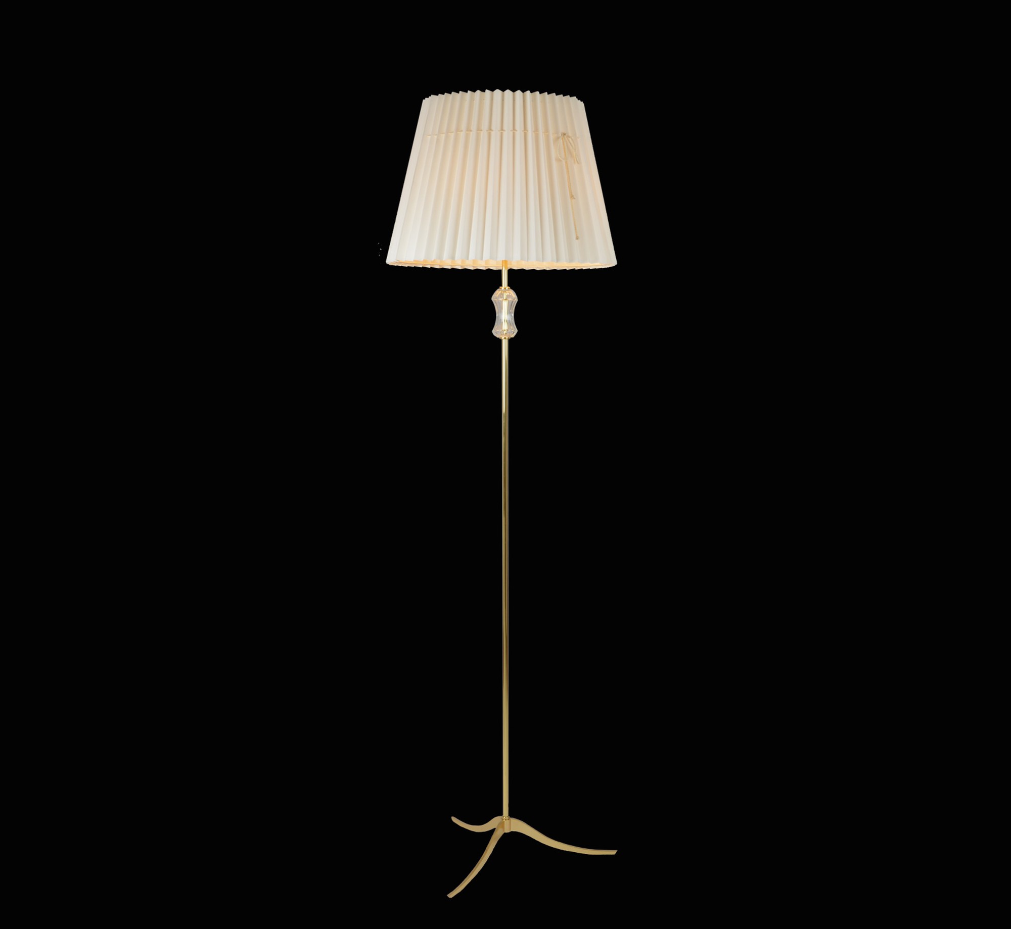 Unlike others of Oswald Haerdtl’s early designs, this floor lamp works completely without the typical organic features and marks the transition to his later works. The simple brass stem is decorated only with a custom-made crystal part, usually found among rather traditional designs. This the most minimalistic yet elegant design by Haerdtl.